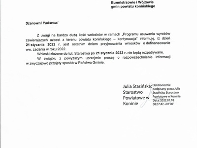 "Program usuwania wyrobów zawierających azbest z terenu powiatu...