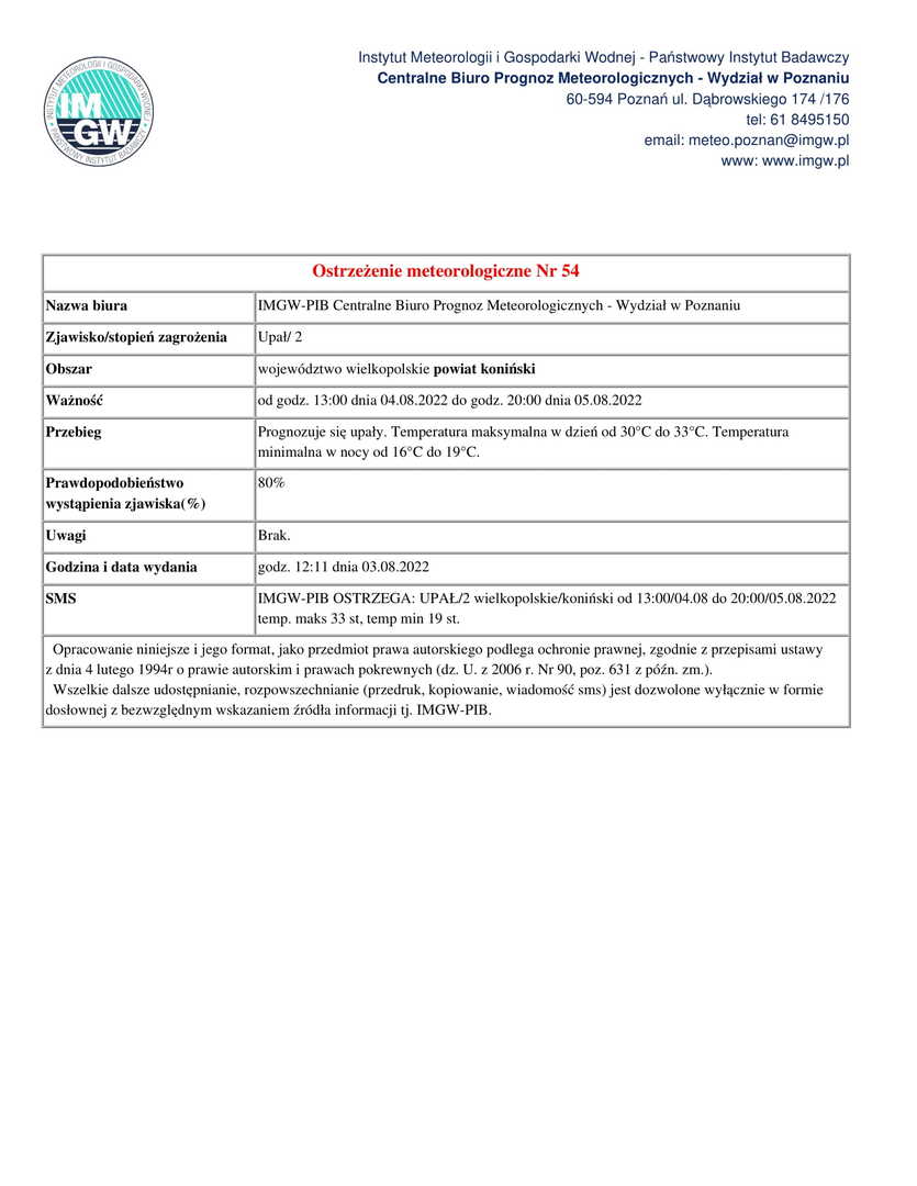 Komunikat ostrzegawczy - upał