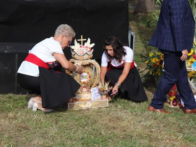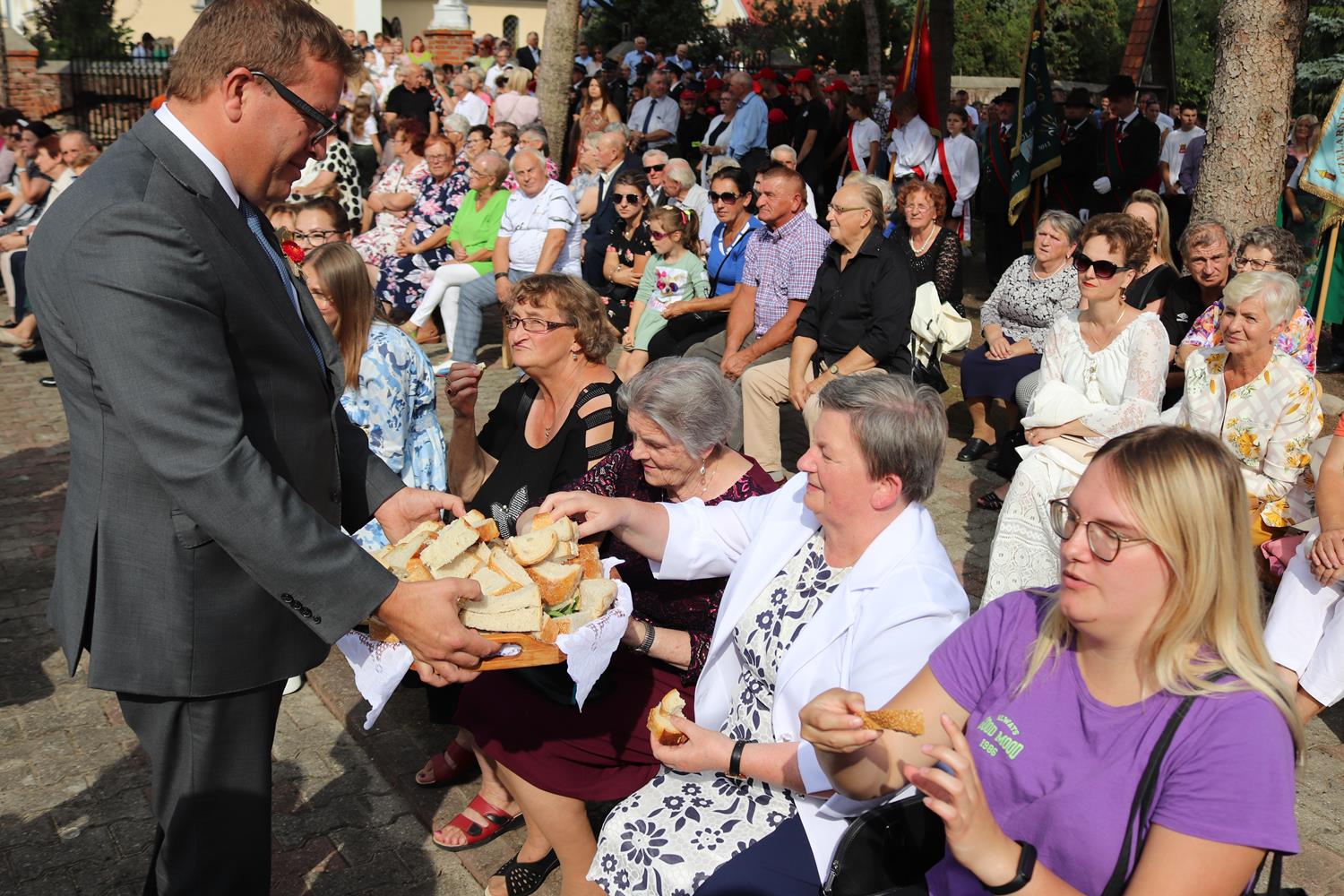 Część druga - oficjalna odbyła się na placu przy ołtarzu polowym. Imprezę prowadził: Jan Wadelski, Dyrektor Gminnego Ośrodka Kultury w Skulsku. Podziękowania rolnikom przekazali: Przewodniczący Rady Gminy Skulsk Stanisław Dominiak oraz Wójt Gminy Wierzbinek w imieniu Konwentu Wójtów i Burmistrzów Aglomeracji Konińskiej. Następnie na scenie wystąpiła Gmina Orkiestra Dęta, a po niej przyśpiewki zaprezentowały Panie z Koła Gospodyń Wiejskich z Mielnicy Dużej. Dzieci i młodzież z okolicznych miejscowości uświetniły obchody dożynkowe swoimi występami wokalnymi .