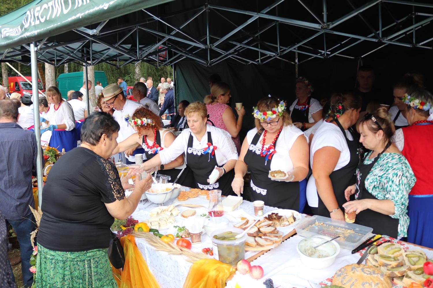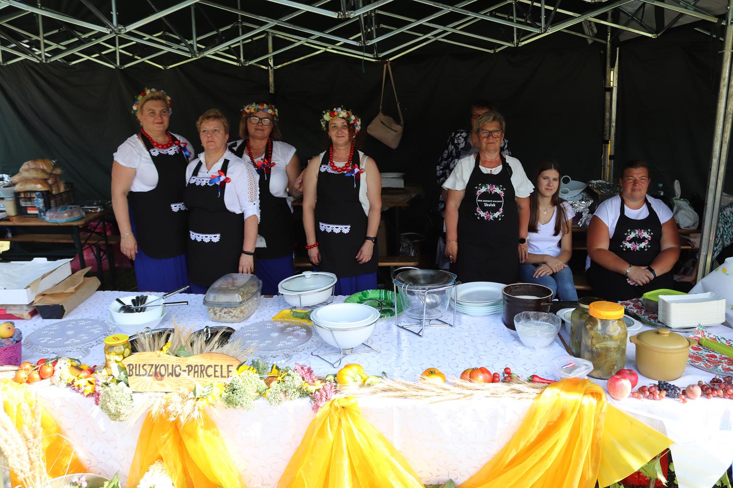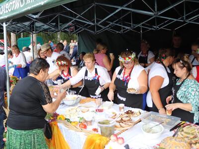 Koła Gospodyń Wiejskich z: Buszkowa Parceli, Kobylanek, Lisewa, Łuszczewa, Mielnicy Dużej, Mniszek, Rakowa i Skulska częstowały pysznymi potrawami. Goście mogli skosztować przygotowanych smakołyków kuchni regionalnej, potraw z mięsa i ryb oraz słodkich wypieków.