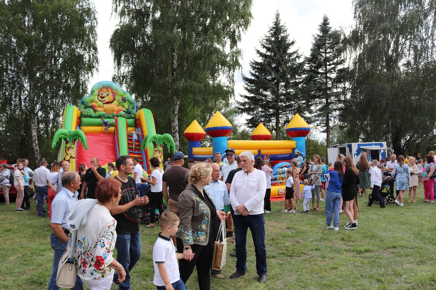 W trakcie uroczystości dzieci chętnie korzystały z przygotowanych dla nich darmowych atrakcji w postaci dmuchanych zjeżdżalni i placu zabaw.