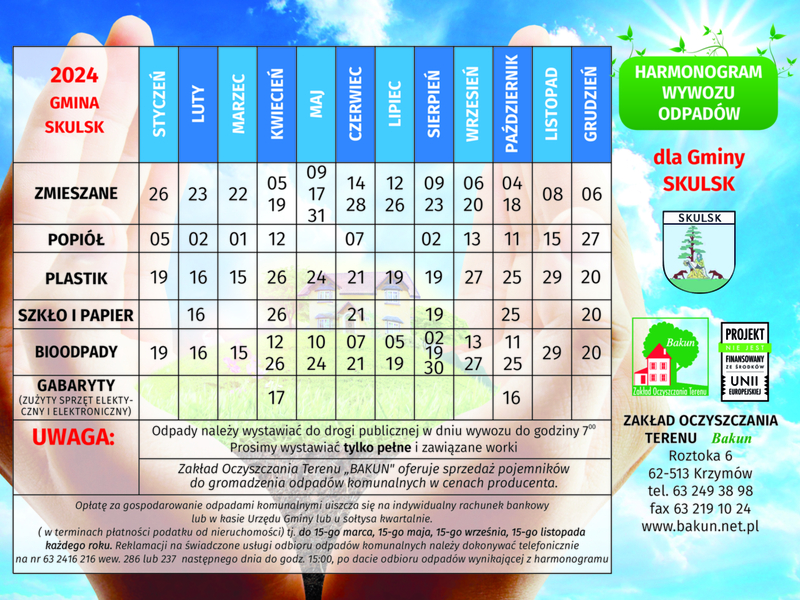Harmonogram wywozu odpadów na 2024 rok