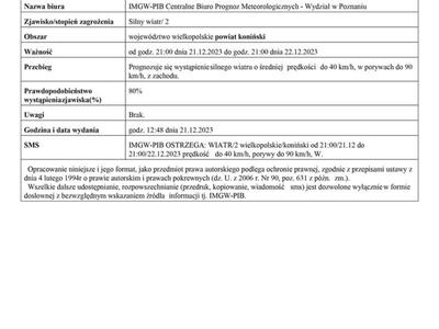 Komunikat ostrzegawczy - silny wiatr