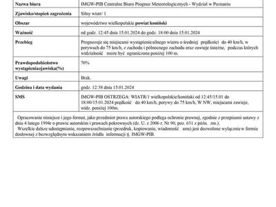 Komunikat ostrzegawczy - silny wiatr.